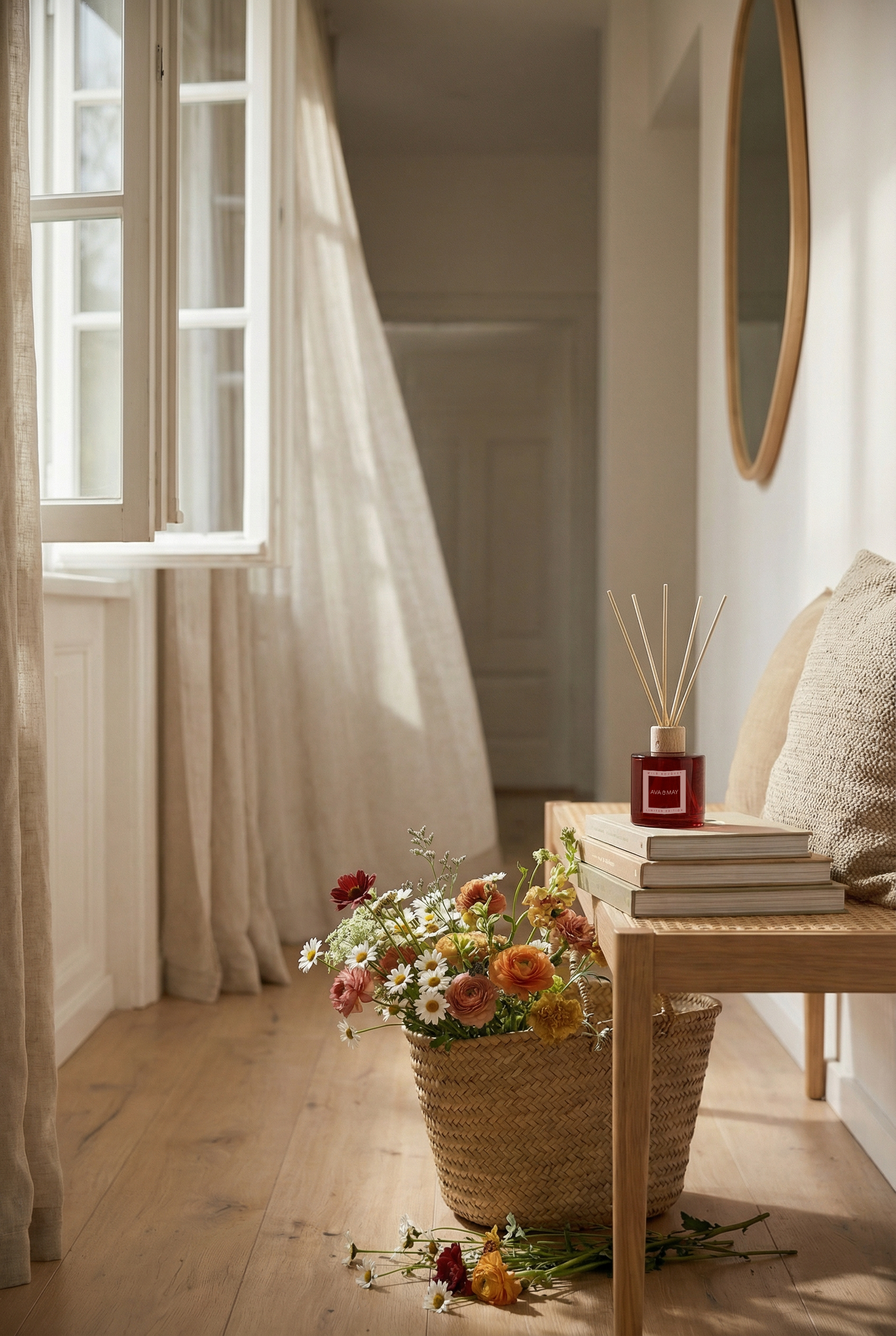 Comme un bouquet de fleurs sauvages fraîchement cueilli, son parfum se déploie avec douceur dans la pièce. La douceur mielleuse du mimosa se mêle à la chaleur vibrante du clou de girofle. Le jasmin, noble et floral, vient parfaire cette harmonie pour une signature olfactive unique. Un moment suspendu : solaire, épicé et résolument printanier.